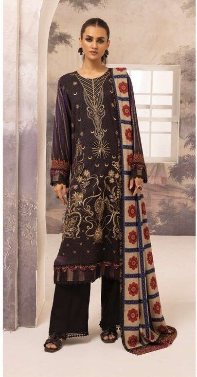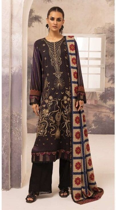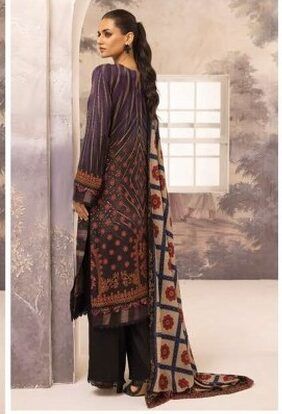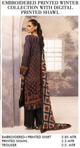Discover the luxurious charm of “Fabel by Johra JH-202” part of the new Winter Collection. This luxurious 3-piece unstitched ensemble features a beautifully embroidered and printed premium Dhanak fabric shirt, exuding sophistication and winter elegance. The printed shawl adds an extra layer of style and warmth, making it perfect for chilly days, while the plain trouser completes the look with simplicity and grace. This design is ideal for those who seek a blend of traditional charm and modern fashion look.