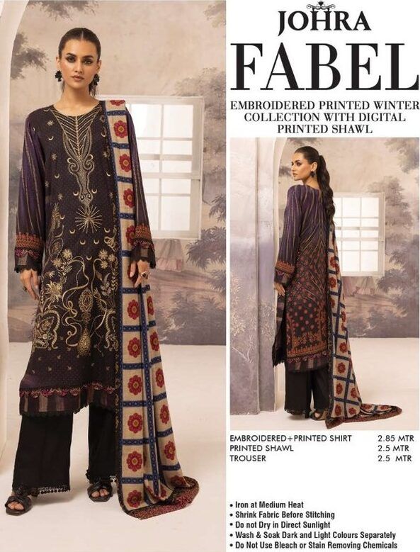 Fabel by Johra Latest Printed & Embroidered Winter Collection unstitched.