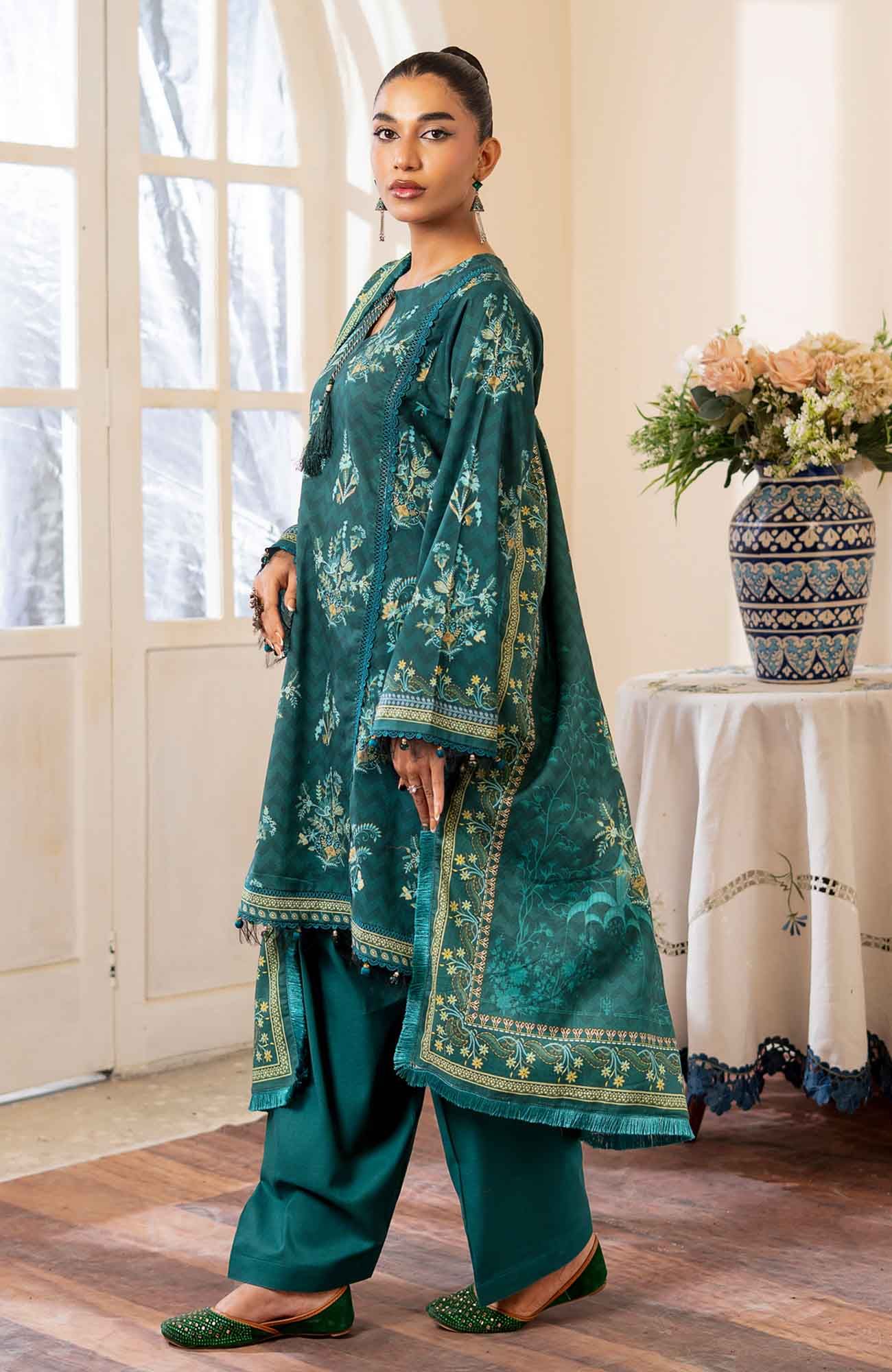 Mausummery khaddar EmeraldMausummery Printed Khaddar Winter Unstitched – Emerald