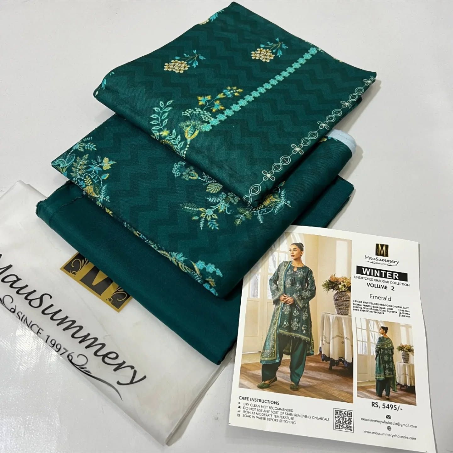 Mausummery Printed Khaddar Winter Unstitched – Emerald