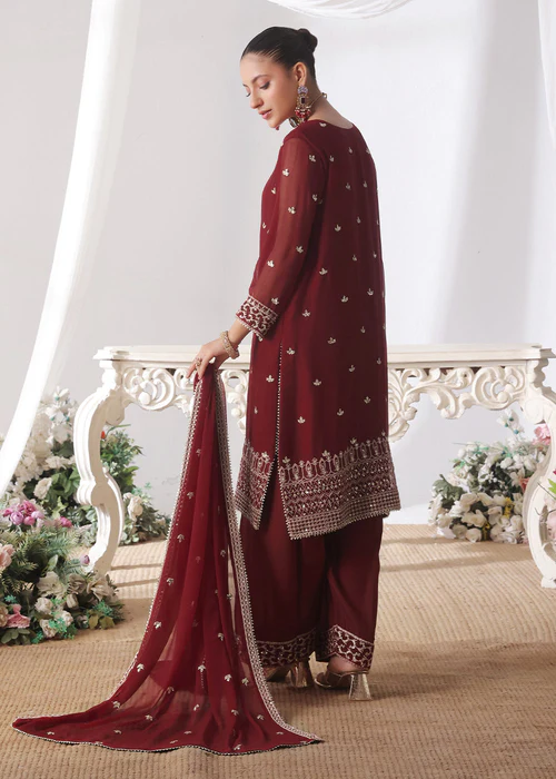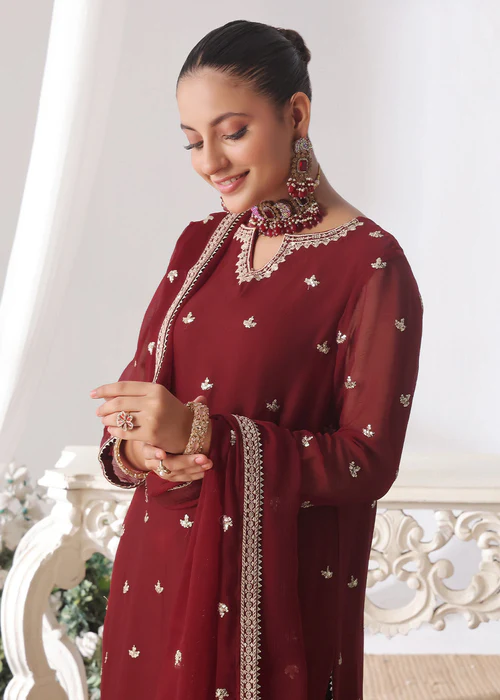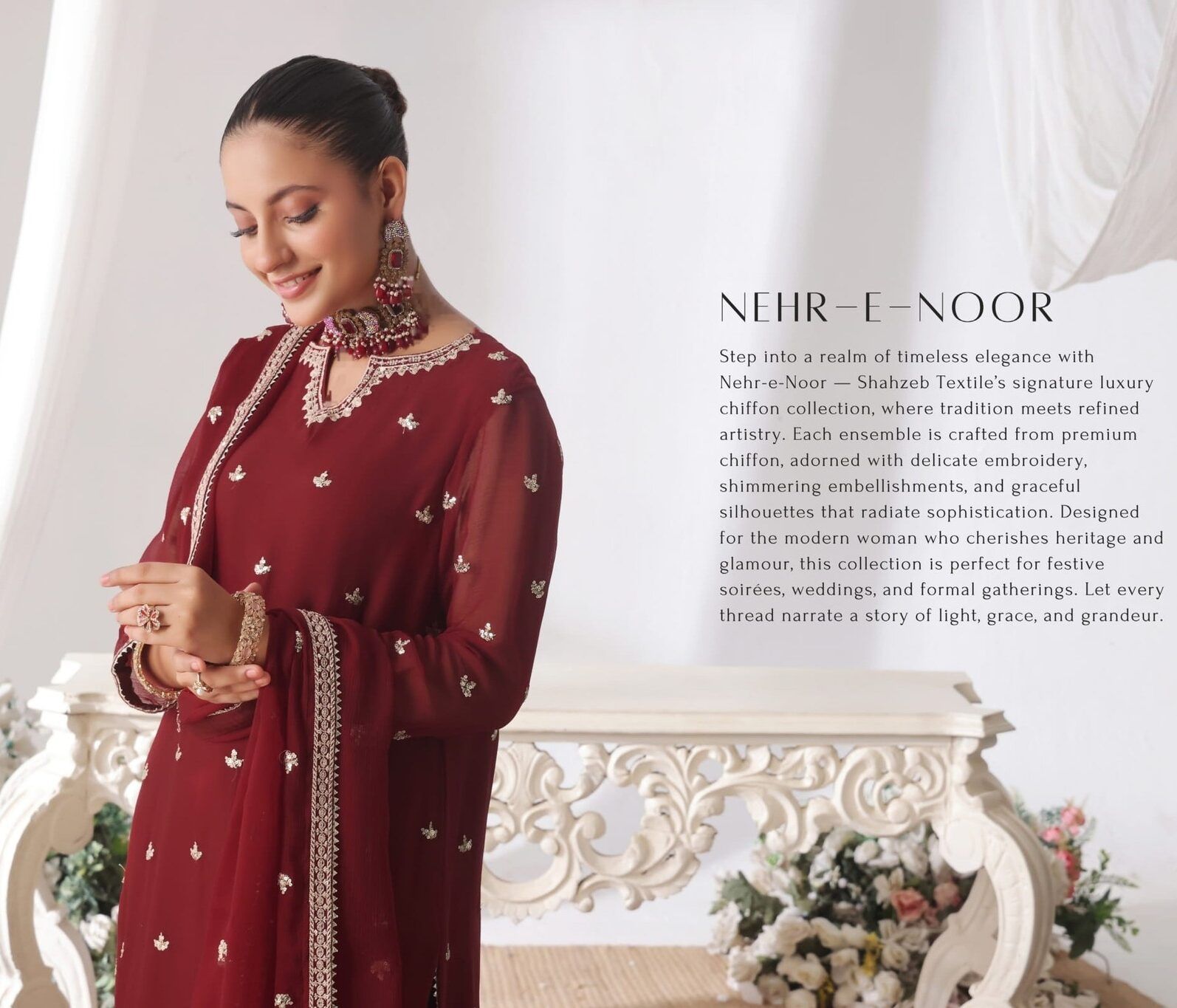 Merakish by Shahzeb Textiles Latest Luxury Embroidered Chiffon Collection. Blood Weave